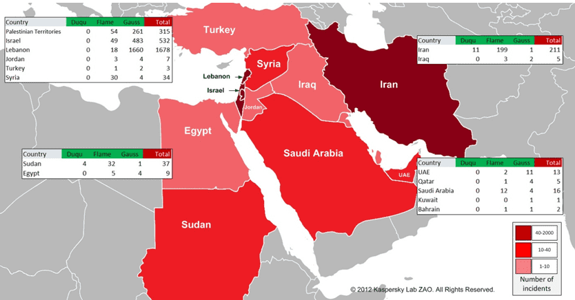 «В 2012 году произошло расширение территории применения кибероружия: если раньше зоной кибервоенных конфликтов считался Иран, то теперь она расширилась на весь прилегающий к нему регион Западной Азии. Подобная динамика является точным отражением политических процессов, происходящих в этом регионе, давно уже являющемся «горячей точкой», — уверен Александр Гостев. — И без того непростую обстановку в регионе, которая сложилась из-за иранской ядерной программы, в 2012 году дополнили политические кризисы в Сирии и Египте. Ливан, Палестинская автономия, волнения в ряде стран Персидского залива дополняют общую картину нестабильности. В этих условиях стремление других государств мира, имеющих интересы в регионе, использовать для достижения своих целей все возможные инструменты — в том числе высокотехнологичные — вполне логично».