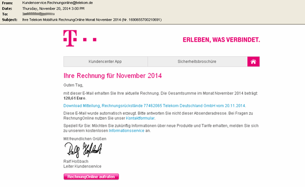 Emotet распространяется посредством спам-писем на немецком языке с вредоносными ссылками или вложениями, внутри которых находится загрузчик зловреда. При этом файл намеренно имеет очень длинное имя, чтобы скрыть от пользователя расширение «exe» в Проводнике Windows, который обычно не отображает на экране название полностью. Также с целью усложнения детектирования антивирусами основная часть троянца скачивается специальным загрузчиком в зашифрованном виде.